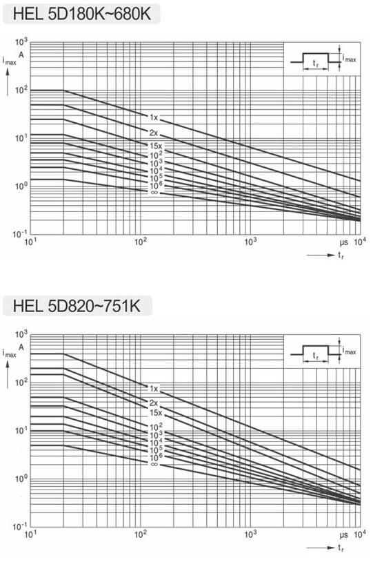 橫軸是沖擊時(shí)間即浪涌波型寬度,縱軸是沖擊電流峰值,